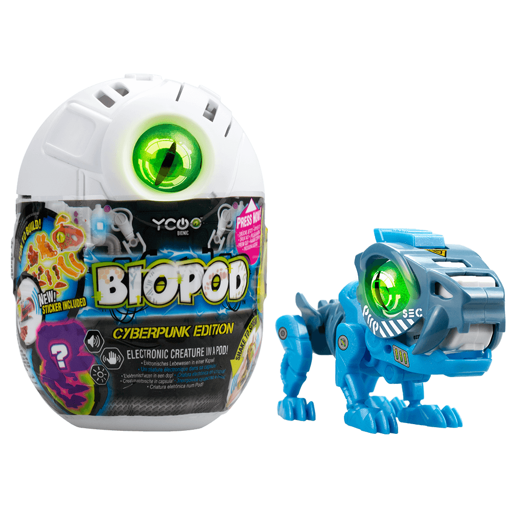 Introducing BIOPOD Cyberpunk Edition by YCOO™ BIONIC – Electronic Creature in a Pod! Dive into the cyberpunk world with these NEW BIOPOD Creatures! Over 10 different parts to build with Stickers included! Available in 8 Styles for Single pack and extra 6 Styles for BIOPOD DUO™, COLLECT THEM ALL!