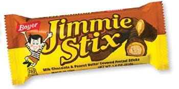 Milk Chocolate and peanut butter covered pretzel sticks, that is, Jimmie Stix!
