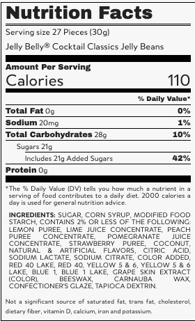 Jelly Belly Cocktail Classics allow you to enjoy the delicious flavors of your favorite craft cocktails without needing to imbibe. Inspired by some classic adult beverages, we set out to create a line of jelly beans that would appeal to adults and children alike. They feature delicious fruit flavors that kids love while reminding adults of some of their favorite grown-up treats.