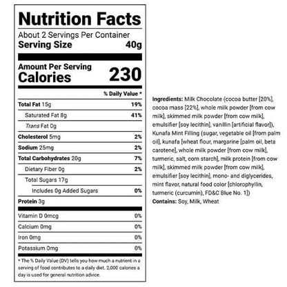 From the first bite, the creamy Belgian-style chocolate melts effortlessly, while the cool mint essence invigorates your taste buds. The crispy knafeh adds a delightful crunch, making every moment of indulgence unforgettable.