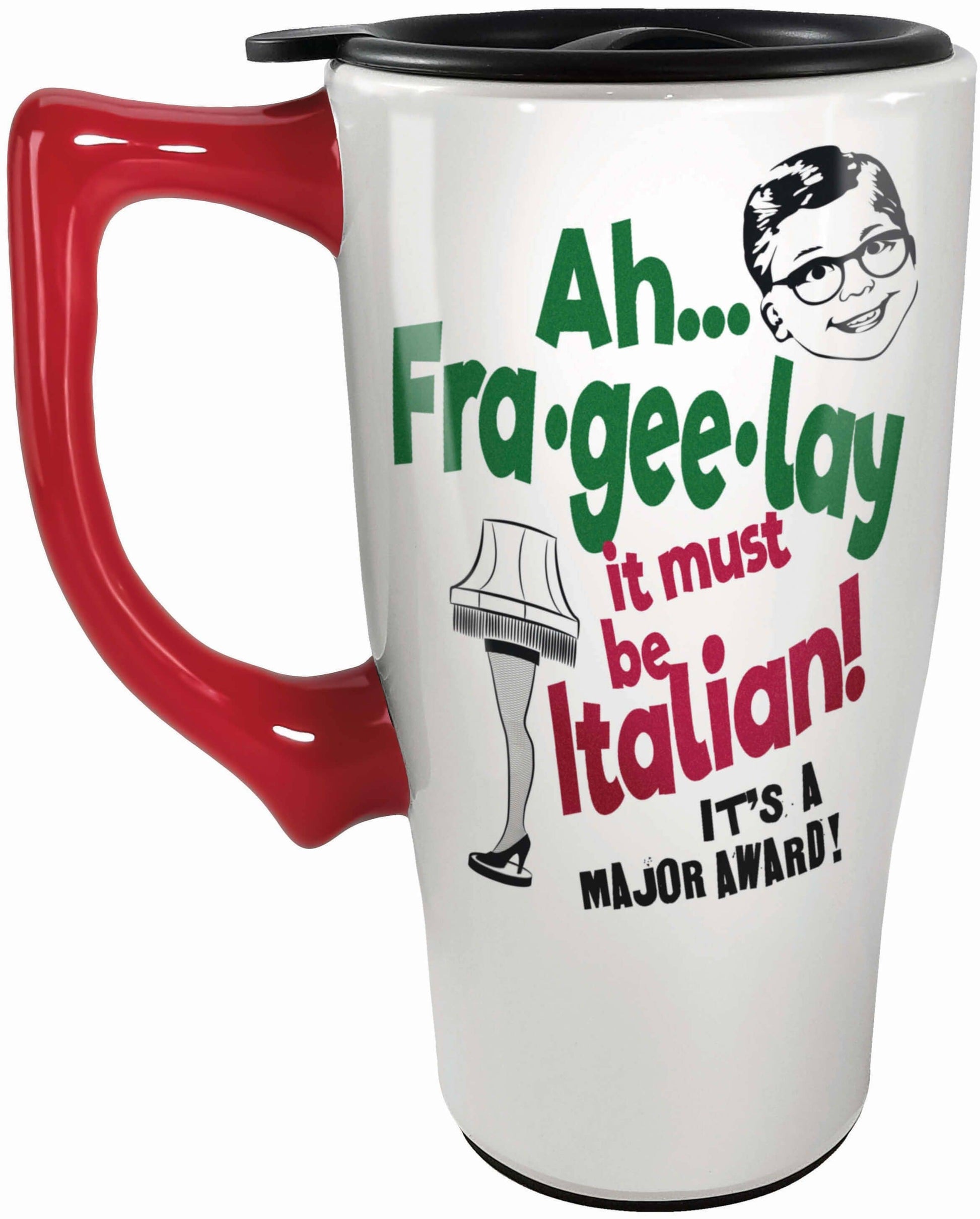 This ceramic travel mug is a great way to take your favorite beverage on the go! It fits in most vehicle cup holders and features both a locking lid and skid resistant bottom to avoid spillage. This mug holds 18 ounces and is both microwave and dishwasher safe!