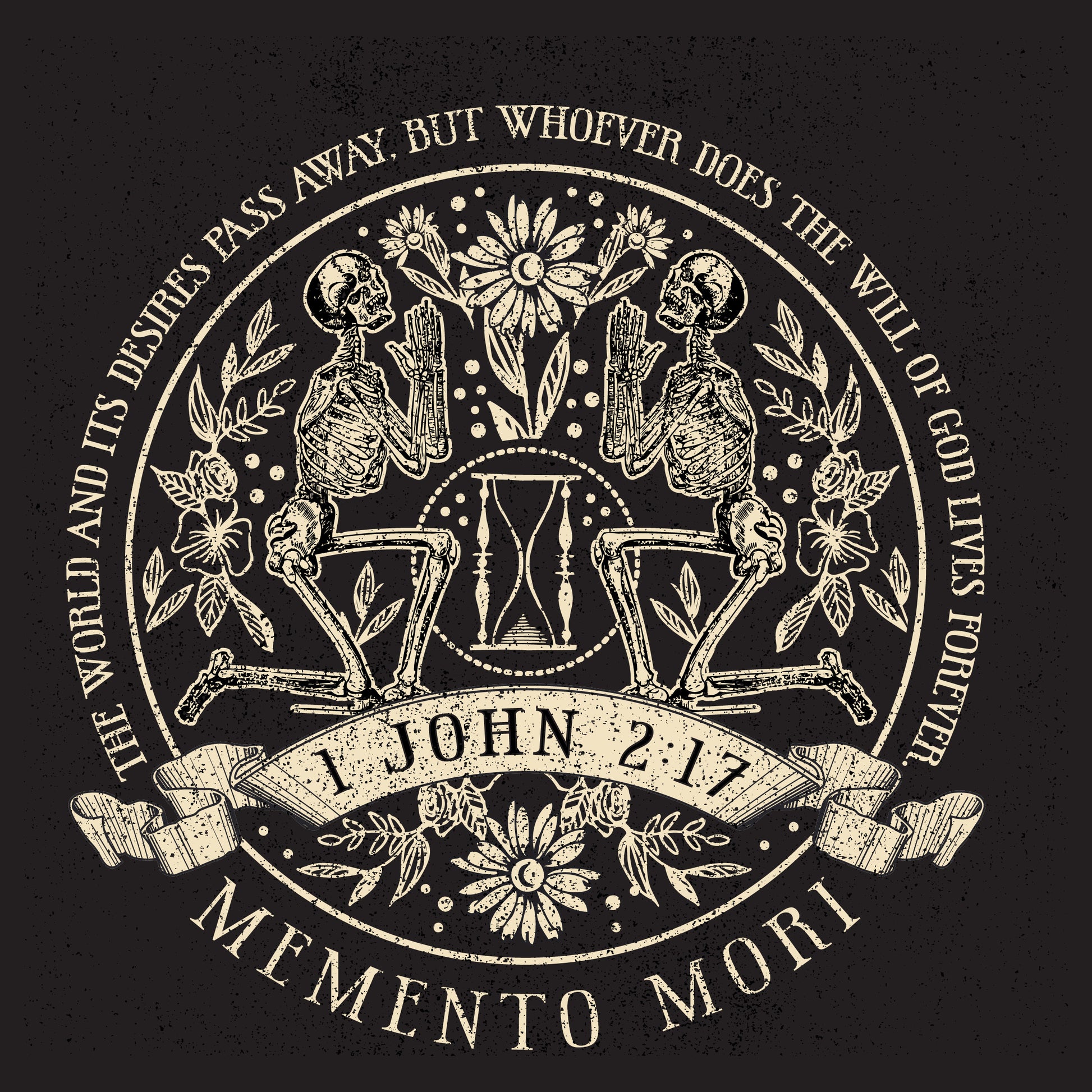 Live each day to the fullest with this thought-provoking unisex tee featuring a floral skeleton and the inscription "Memento Mori" (Latin for "Remember you must die") alongside 1 John 2:17.