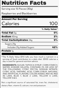 These European-styled candies boast a soft gel center with high fruit intensity. Each piece is then bathed in a shower of crunchy candy seeds giving it its berry-like appearance.
