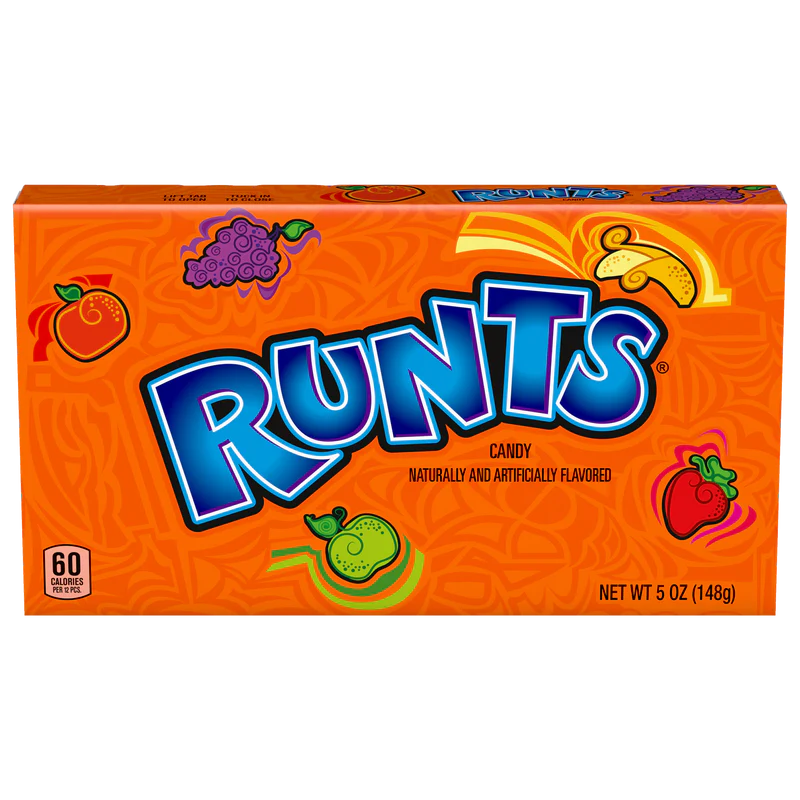 If you took SweeTARTS, shaped them into fruits and gave them a thick, glossy, sweet shell, you'd have Runts, named presumably, for their diminutive size. You may have seen Runts in the 25-cent candy dispensers, where their sweet shapes and shiny, brightly colored coatings attract the eye. Runts are hard enough to last a while in the mouth, if you resist the urge to crunch them -- yet they're not so hard that you can't crunch them, if you wish. If you do bite into them, you'll find that their powdery, tartly sweet center is much like a SweeTART. Runts come with an assortment of five fruity shapes and flavors: green apple, strawberry, grape, orange and banana.