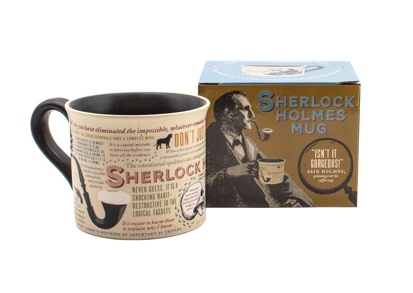 We designed our Sherlock Holmes mug with plenty of details for the keen observer. Holmes quotes, rules of deduction, intriguing images, and Sidney Pagets' portrait of the world's only consulting detective!