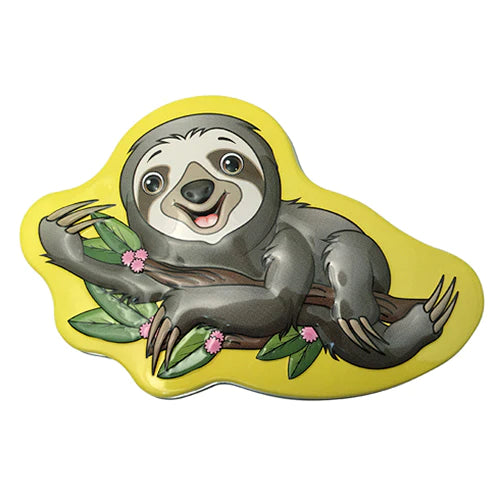 This collectible candy tin features an adorable, lazy sloth on the lid and is filled with strawberry sloth-shaped candies.