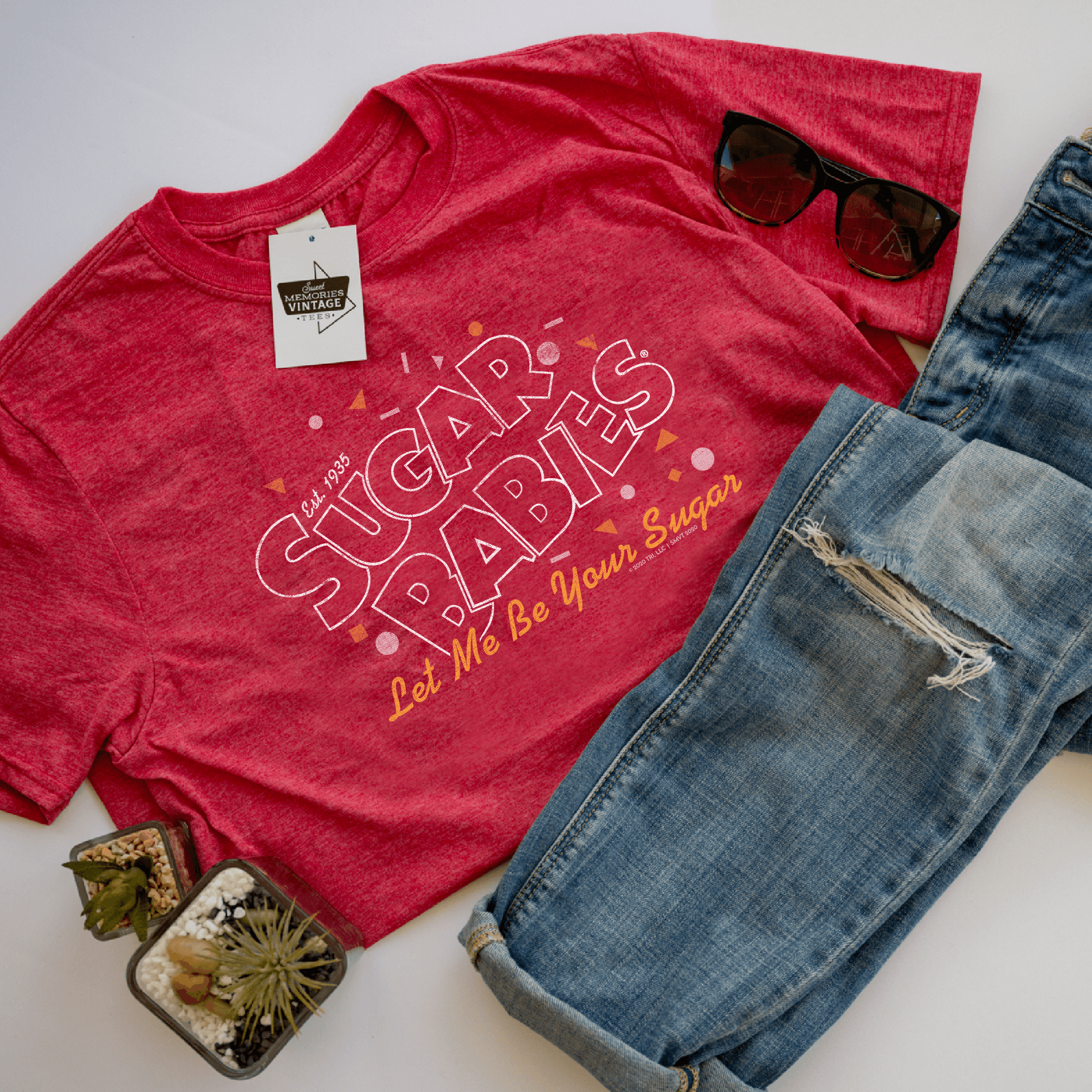 This vintage-inspired design features the authentic Sugar Babies® logo with a cool, distressed look. It'll feel like this comfy tee has been a cherished part of your wardrobe for years.