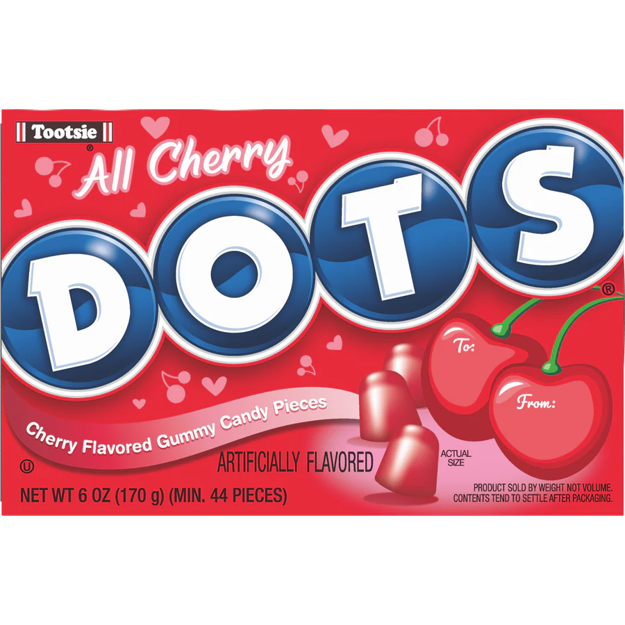 Valentine's Day candy that's as sweet and long lasting as the love you feel for your special someone! These special edition Valentine's DOTS® gumdrops come in cherry flavor, and these theater boxes hold plenty of DOTS gumdrops for lovers to share.