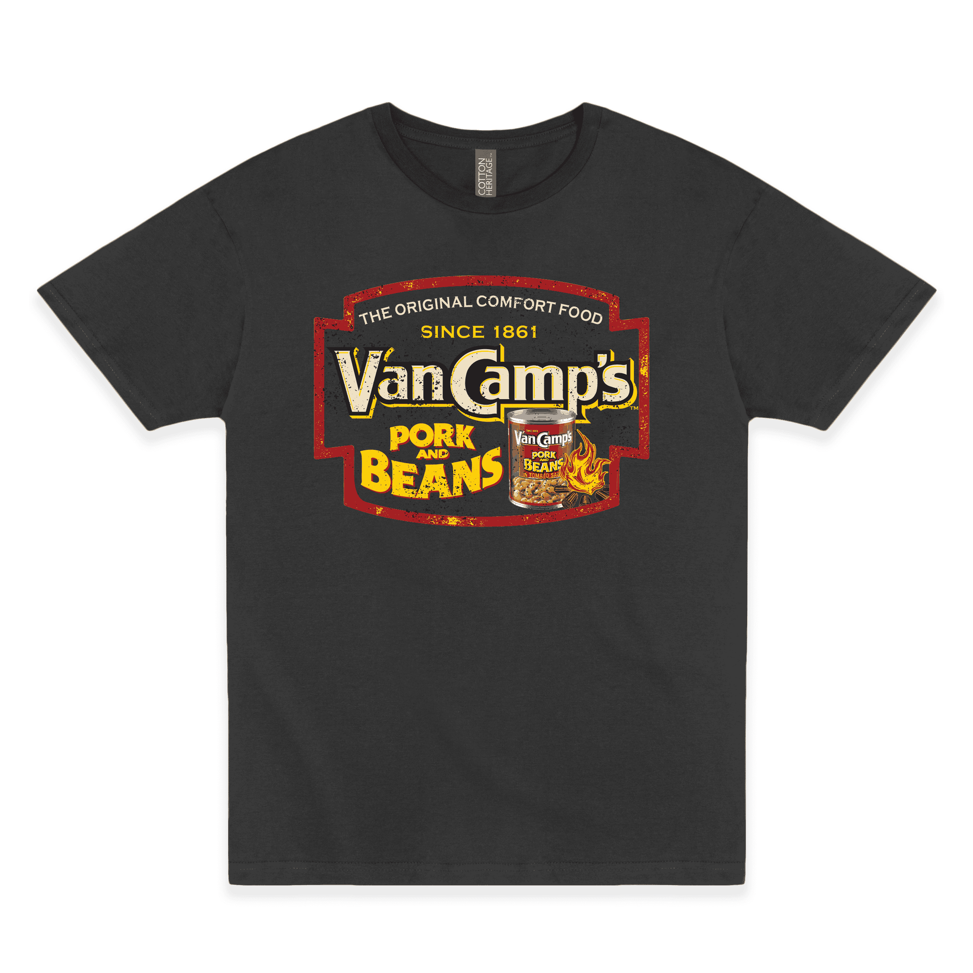 Official VanCamp’s™ Pork and Beans T-Shirt – Retro Comfort Food Tee | Vintage Americana Apparel